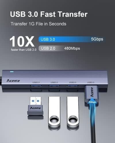 Aceele USB C Hub 4 Ports, Aluminum USB C to USB Hub with 2ft Extended Cable