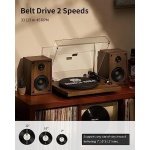 More features: Quieter belt-driven, built-in Bluetooth 4.2 input for playing your music from other mobile devices(digital music), built-In phono preamp and RCA line output, stable iron platter for educing vibration, adjustable counterweight force to avoid skipping and distortion, 2 speeds(33 1/3 & 45RPM), easy to install and use.