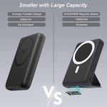 Strong Magnetic & Fast Charging: MagSafe battery pack adopts the latest magnetic suction technology, charging immediately after snap. Support 15W max wireless fast charging, 22.5W max USB-A PD output, Max 20W USB-C output, 18W Lighting input fast charging, and max 18w USB-C input. Save more than half the time compared to power bank without fast charging.