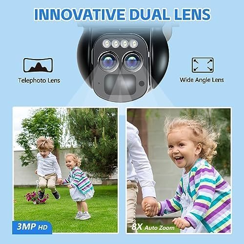 【8X Zoom Security Camera & 360°Coverage】8X Digital zoom-in for you see clearer details with enlarged image. The PTZ outdoor security cameras wireless outdoor wifi supports horizontal 355°and vertical 90°pan-tilt rotation auto tracking, providing you with 360°all-round protection almost no blind spots. You can also manually rotate the wifi camera to see different directions and monitor any corner remotely via the APP, protecting your property and family!