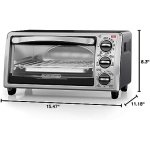 Large enough for a 9” pizza or four slices of bread, the BLACK+DECKER 4-Slice Stainless Steel Toaster Oven with Broiler Pan complements any kitchen countertop. This compact, versatile toaster oven bakes, broils, toasts, and keeps food warm, at up to 450°F. It comes with a baking and broiler pan that fits perfectly into the small toaster oven interior. Plus, our exclusive EvenToast Technology optimizes heat distribution to toast bread evenly. When it’s time to eat, trust the #1 brand in toaster ovens*—BLACK+DECKER. Large viewing window keep an eye on food during cooking. The durable glass window gives you a clear view of food throughout the cooking process. Bake/broiler pan don’t worry about finding pans to fit in the oven. The included baking/broiling pan fits perfectly, making it easy to insert and remove food. Toasting rack also included.