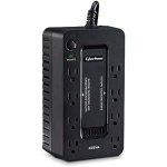8 NEMA 5-15R OUTLETS: Four battery backup & surge protected outlets; Four surge protected outlets; INPUT: NEMA 5-15P plug with five foot power cord