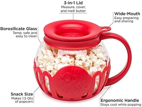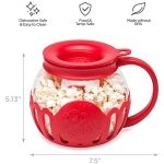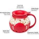 Ecolution Original Microwave Micro-Pop Popcorn Popper, Borosilicate Glass, 3-in-1 Silicone Lid, Dishwasher Safe, BPA Free, 1.5 Quart – Snack Size, Red.
