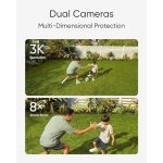 Double the Cameras, Double the Possibilities: The telephoto camera captures details from up to 50 ft (15 m) away, while the wide-angle camera focuses on the big picture in 3K resolution. Dual cameras provide up to 8× digital zoom.