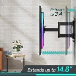 Full Motion TV Mount: Tilting your TV screen up 5° and down 15° to reduce glare, swivel tv ±45° and level adjusts ±3° for maximum viewing flexibility. Retract 3.4” for space saving, extend 14.6” from wall for optimal positioning. Greenstell tv wall mount can help you feel comfortable during tv time at family gatherings