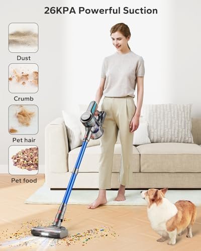 HOMPANY Cordless Vacuum Cleaner, 26Kpa Powerful Suction Stick Vacuum, 45Mins