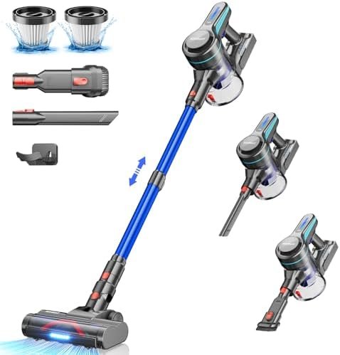✅[1.5L XL DUST CUP & V-SHAPED FLOOR BRUSH] Large dust cup easily holds more dust, one-touch emptying avoids contact with dust. New V-shaped anti-tangling brush effectively solves the problem of tangling, which is common with traditional vacuum cleaners.