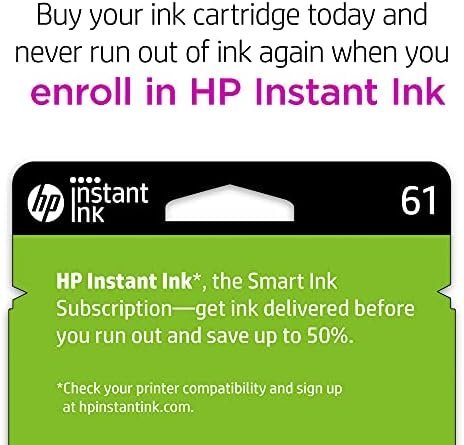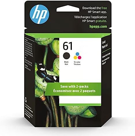 What’s in the box: 1 New Original HP 61 pack of 2 ink cartridges (CR259FN): 61 black ink cartridge (CH561WN), 61 tri-color ink cartridge (CH562WN)