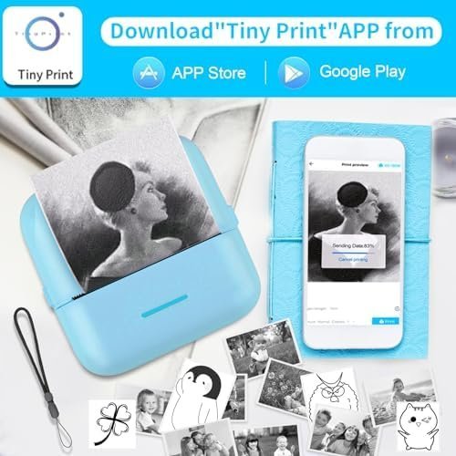 🎁2023 Newest Printer & Pocket Portable: The HuiJuKeJi photo printer size is 82*82*45 mm, and it only weighs 210g, can be loaded with pockets, bags.It is easy to print anytime, anywhere, and can recognize text, pictures, tables, emoticons, QR codes, etc. ⚠️Note: Please follow the printer’s user manual to search”Tiny Print” on the App Store or on Google to connect and use.