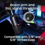 Boom arm and mic stand threading: Versatile built-in mount adapter fits 3/8-inch and 5/8-inch threads, making it compatible with most mic stands or boom arms.