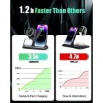 【Safe & Fast Wireless Charging Station】Equipped with 18W fast charger adapter, this charging station provides fast charging even with 3 devices together. This charging station has intelligent charging current control, voltage control, temperature control, foreign object detection and the heat dissipation holes on the back of charging station, this 3 in 1 charging station for apple protect your devices from overcharge damage and ensure safe charging