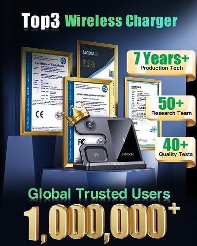 【Portable & Space-Saving】JARGOU wireless charging station for Apple device looks sleek and won’t take up much space, perfect for office, home or travelling to save on wire clutter. Wireless charger can charge for iPhone either vertical or horizontal. This wireless charging station can charge all 3 devices at the same time