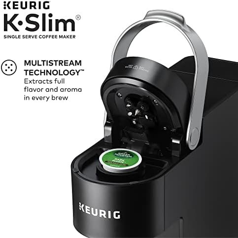 Enjoy ease and great taste in little space with the Keurig® K-Slim® single serve coffee maker. At just 5” wide, the K-Slim® coffee maker fits neatly on your countertop, making it the perfect choice for when space-saving and simplicity are important. The K-Slim® coffee maker brings together the performance and simplicity that Keurig® is known for, in a slim and sleek design. You also get the convenience you desire with the capacity to brew up to four 8 oz. cups before refilling the 46 oz. removable water reservoir, and the ability to enjoy a fast and fresh-brewed 8, 10, or 12 oz. cup at the push of a button. Choose from hundreds of flavorful K-Cup® pod varieties of coffee, tea, cocoa, and more. With the K-Slim® coffee maker, your delicious morning cup or midday pick-me-up is always ready in minutes, and you never have to sacrifice countertop space for taste again.