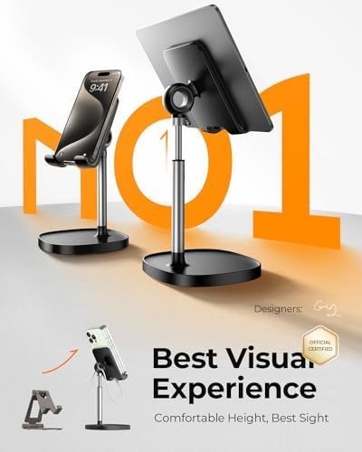 LISEN Cell Phone Stand, Height Angle Adjustable Phone Holer for Desk, Taller