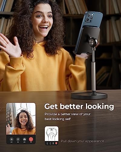 WEIGHTED ANTI-SLIP BASE: This cell phone stand for desk is equipped with a weighted base and an aluminum alloy rod. Therefore, this iPhone stand holder is stable enough to support all smartphones or small tablets, such as 2023 iPad Mini, iPhone 15 14 pro max 13 Pro/13 Mini/12/12 Pro/12 Pro Max/12 Mini/iPhone 11/11 Pro/Max/X/MAX/XR/8/8P, Samsung Galaxy S22, S22, Note 10/9/8/Plus, S10/S9/S8, Kindel, Switch, iPad Mini,iPad Air, etc.We recommend the most stable compatible device size is 4-10 inchs