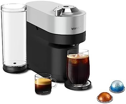 SIGNATURE COFFEES AND ESPRESSOS: Vertuo Pop+ offers a variety of coffee formats in 5 sizes, including 5, 8, 12oz coffees, as well as single and double espressos brewed hot or over ice.