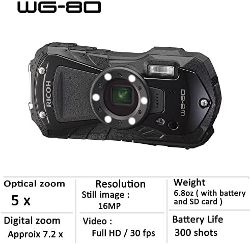 Ricoh WG-80 Black Waterproof Digital Camera Shockproof freezeproof crushproof