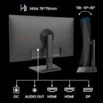 Ergonomic Design: Eye care; Easy Mount Stable Stand, -5°~15°Tilt , 178°V/H Viewing Angle, 75×75mm VESA