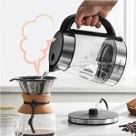 Durable Glass-Of attractive borosilicate glass and brushed 304 stainless steel, the hot water heater will last for years to come, adding a unique charm to your kitchen. The exterior is brilliantly clear and stain-free with marked measurements for precise pouring.