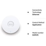 【2.5GE Port with PoE+ for Easy Installation】Armed with a 2.5 Gigabit Ethernet port, the EAP670 delivers exceptional multi-gigabit performance and boosts total internet throughput for faster, better Wi-Fi. Supports standard 802.3at PoE+ and 12V/1.5A DC power supply, can be powered by a TP-Link PoE+ switch, or the provided 12V/1.5A DC adapter, making deployment effortless and flexible.