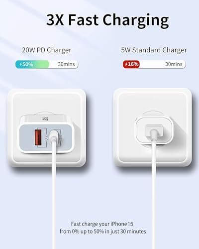 With power delivery 3.0 fast charging technology, charge your iphone 15/14 up to 50% in just 30 minutes. 3X faster than 5W charger.