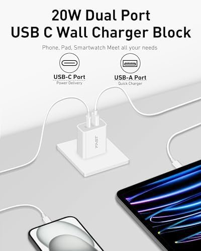 Safe & Reliable: 20W USB C power adapter equipped with multiple safety protection system, automatic identification of equipment and adjustment of power output. Prevent short circuits, overheating, overcharging, and overcurrent to protect your connected devices.