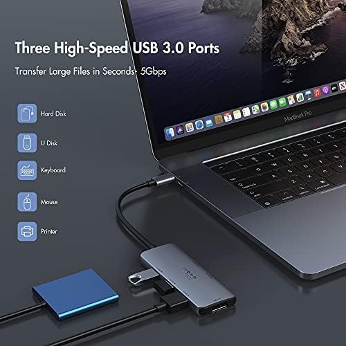 3 Super Speed USB 3.0 Ports: This USB C Macbook Air Dongle comes with three super speed usb 3.0 ports transfer data up to 5Gbps, support usb keyboard, mouse, usb driver, usb hard disks.