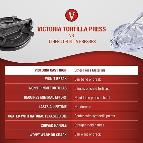 SMALL OR LARGE TORTILLA PRESS: The Victoria tortilla press is made with natural materials and is easy to maintain. It’s available in multiple sizes, and each press is restaurant quality to ensure perfect tortillas every time. Give your cooking an upgrade by using cast-iron cookware.
